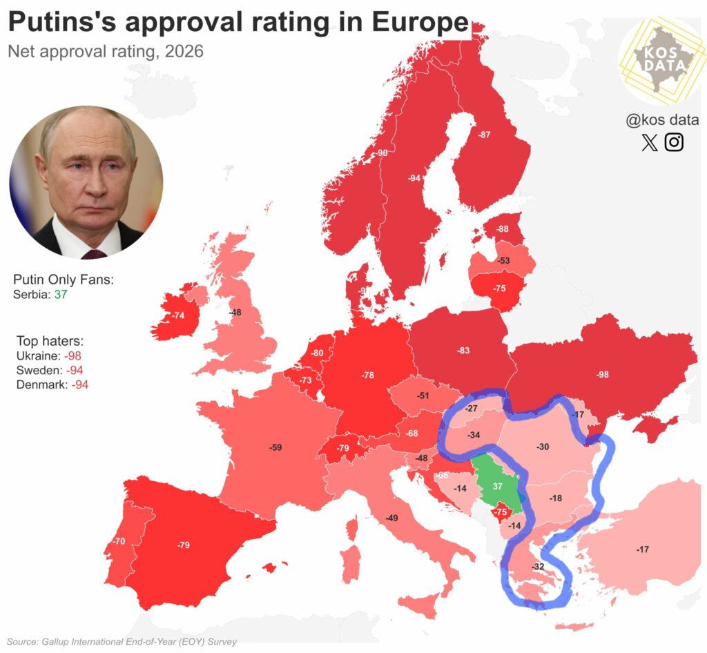 За споредба еве ја поддршката за рускиот претседател Влчадимир Путин.