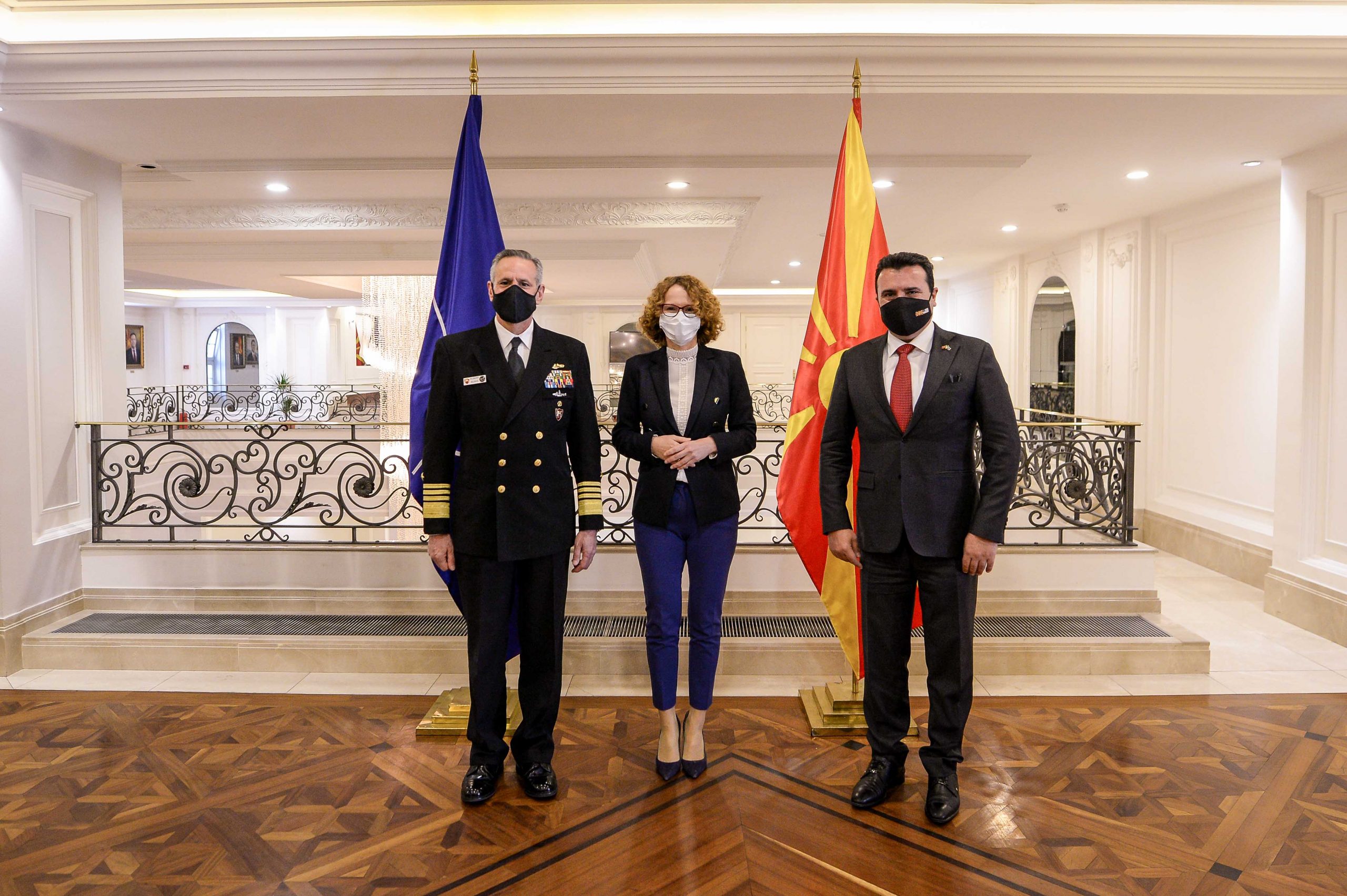 Премиерот Зоран Заев го прими командантот на сојузничката команда на здружени сили на НАТО во Неапол, адмирал Роберт Бурк, кој со делегација на НАТО е во посета на нашата земја по повод одбележувањето на првата годишнина од членството на Северна Македонија во Алијансата.