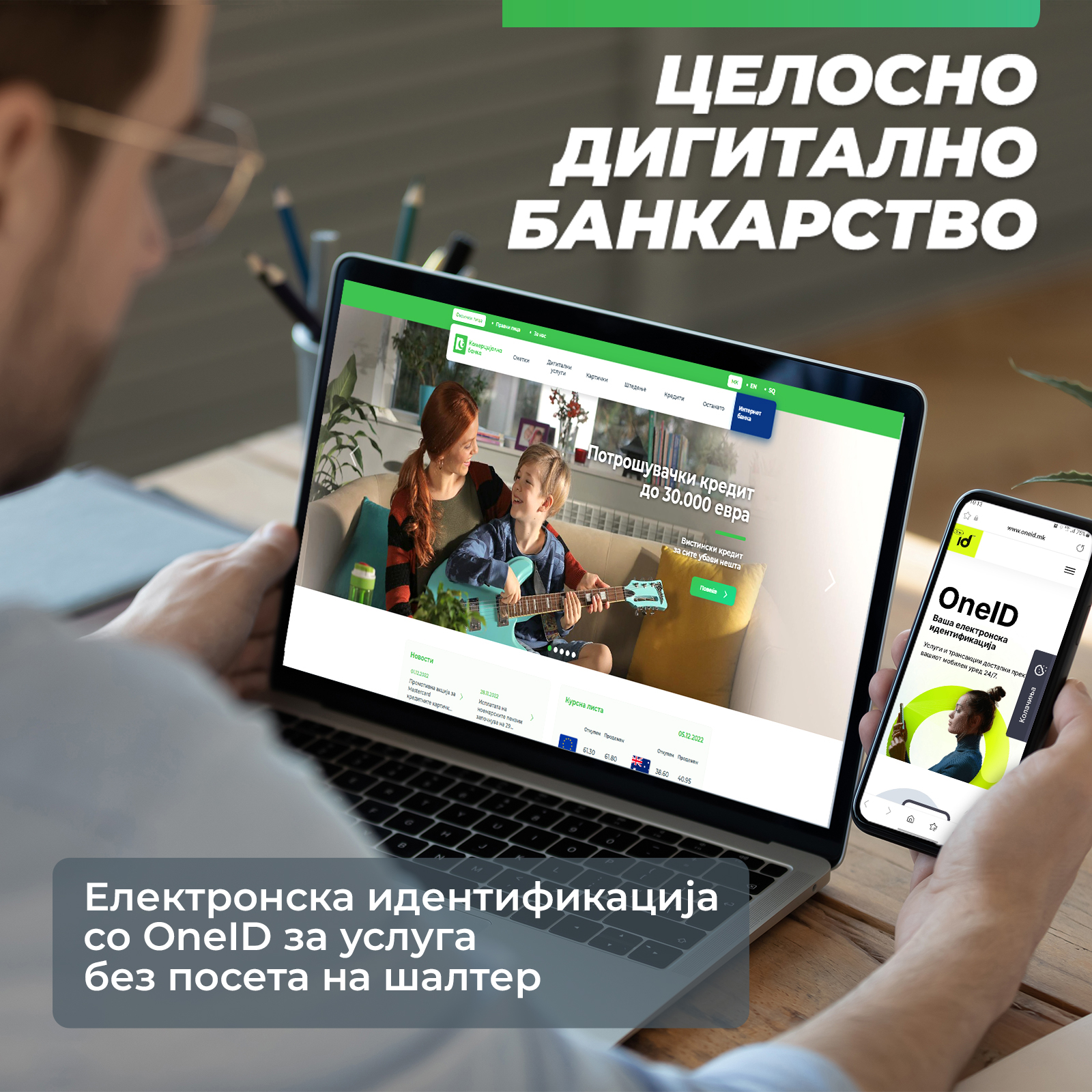 Со употреба на електронската идентификација OneID, без посета на шалтер, може да се ажурираат лични податоци, а наскоро ќе може да се поднесе барање преку Интернет банка за дозволено пречекорување на сметка и за потрошувачки кредит. Исто така, ќе биде овозможено и далечинско активирање Интернет банка, како и отворање платежна сметка во Комерцијална банка.