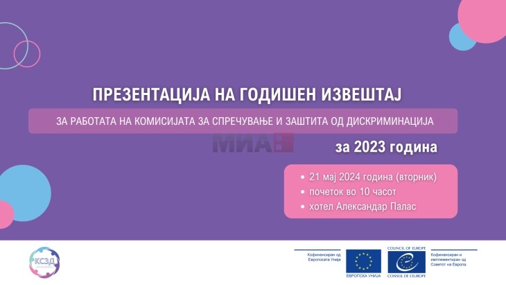 Комисијата за спречување и заштита од дискриминација денеска ќе го презентира Годишниот извештај за работата за 2023 година.