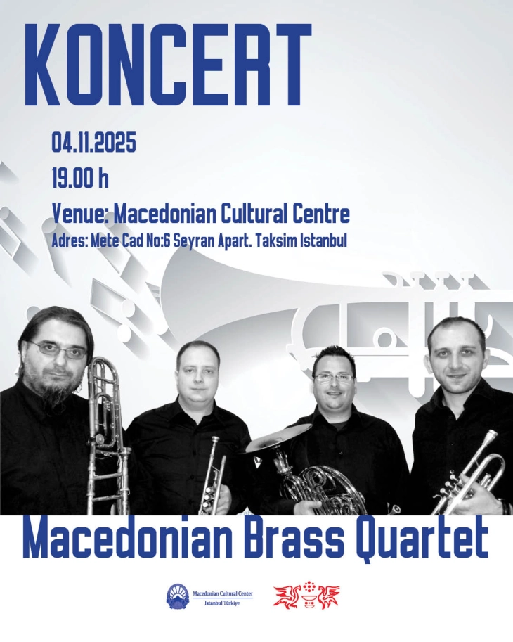 Македонскиот брас квартет денеска ќе одржи концерт во македонскиот Културно-информативен центар во Истанбул.