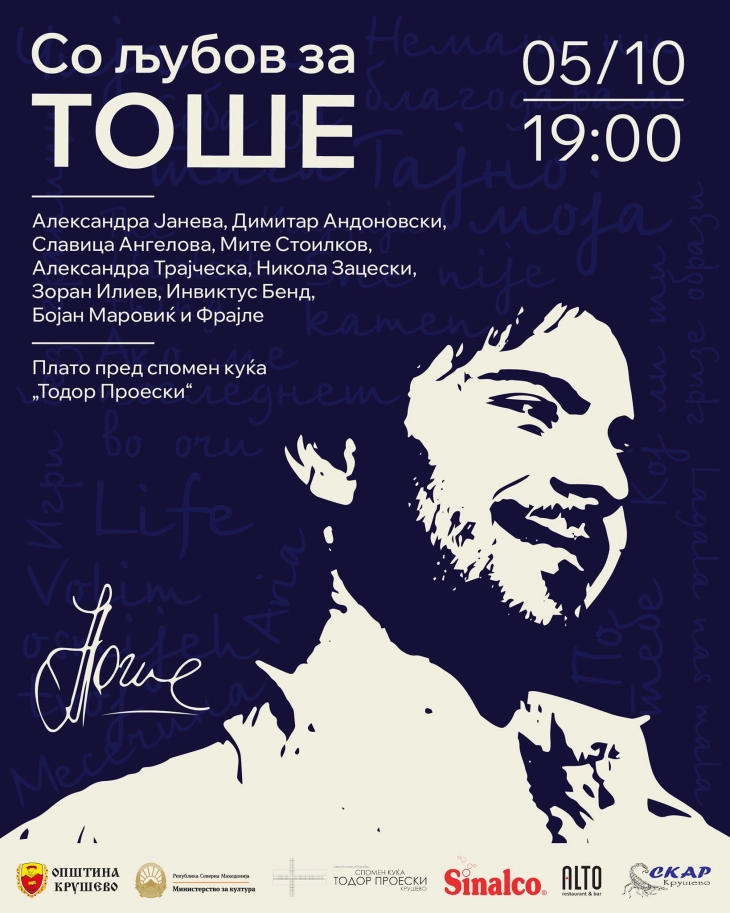 – На концертот ќе ги пееме неговите безвременски хитови – „Со љубов за Тоше“, најавуваат од тимот „Krusevo Advisor“.