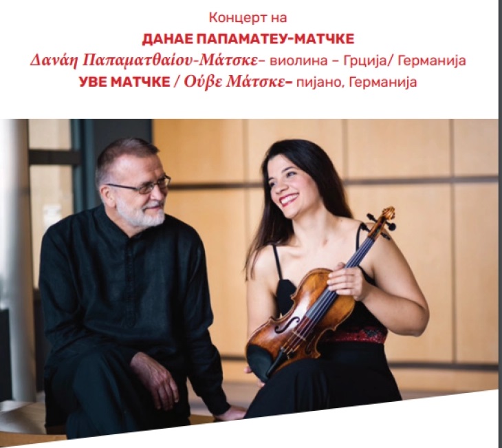 Во рамките на музичката програма на Фестивалот Скопско лето 2023, вечер во фоајето на Националната опера и балет ќе настапат пијанистот Уве Матшке и виолинистката Данае Папаматеу – Матшке од Грција, со изведба на неколку дела на класична музика за виолина и пијано од истакнати грчки композитори.