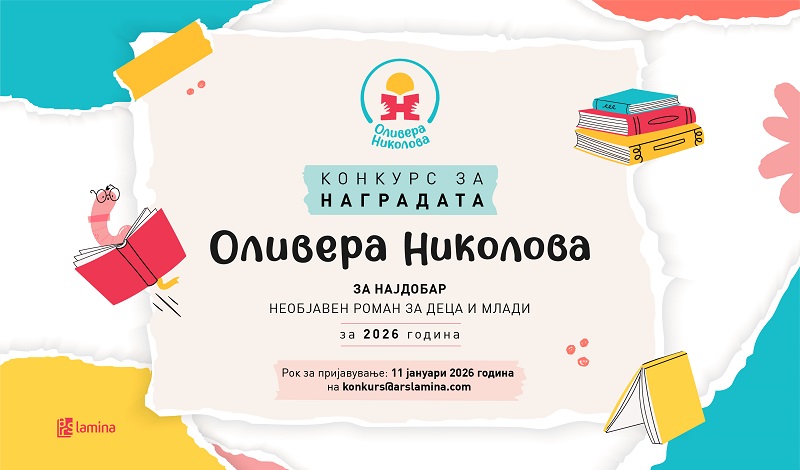 Вториот конкурс за наградата „Оливера Николова“ за најдобар необјавен роман за деца и млади ќе трае до 11 јануари 2026 година. Победникот на наградата востановена од издавачката куќа „Арс Ламина“ ќе биде соопштен на 11 март 2026, на денот на раѓањето на големата македонска писателка Оливера Николова.