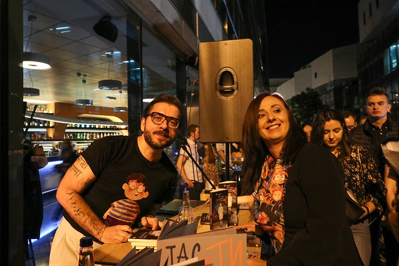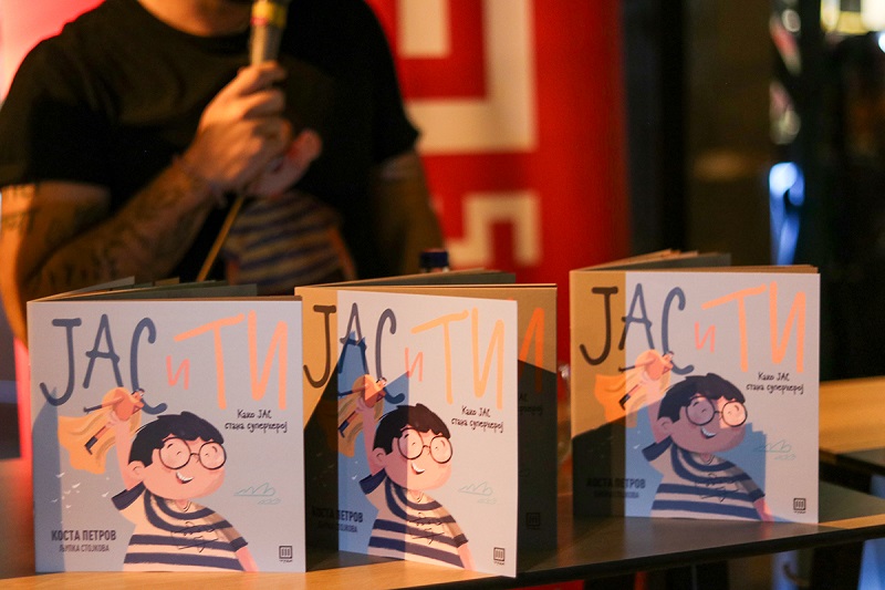 Што се однесува до детската сликовница, со години сакав да напишам детска сликовница но моите мисли секогаш биле прекомплицирани, па дури и конфузни, а за сликовница треба да имаш јасна и чиста мисла. Но најверојатно за се треба да дојде вистинскиот момент во животот, така и со сликовницата. Едно утро се разбудив во 4 часот наутро и за 20тина минути ја напишав приказната за ЈАС и ТИ а Љупка Стојкова направи одлични илустрации што совршено ја отсликуваат приказната за суперхеројот што живее во секој од нас, вели авторот кој синоќа беше расположен да дели тона автограми.
