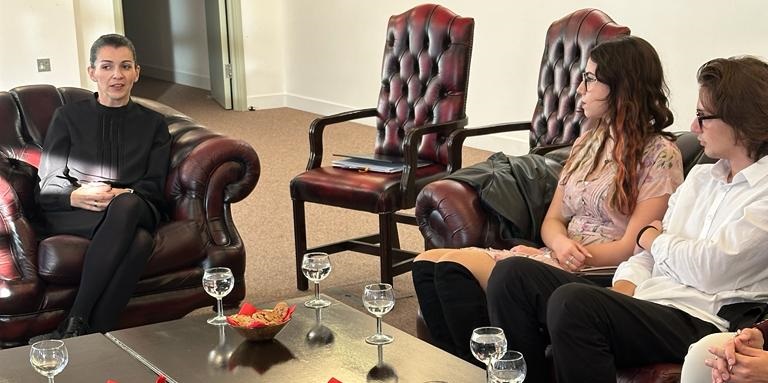 На средбата, студентите кои ги стекнуваат своите знаења на универзитетите во Лондон, Манчестер, Бристол, Виндзор ја информираа министерката дека нивната заедница на стипендисти е најголема во Манчестер.