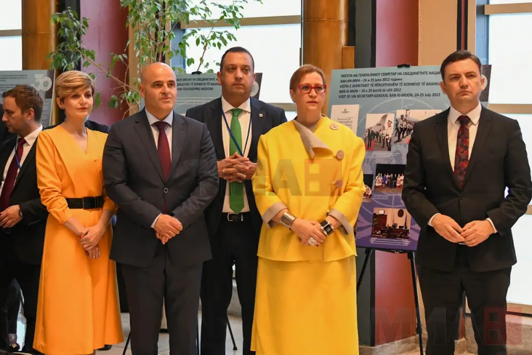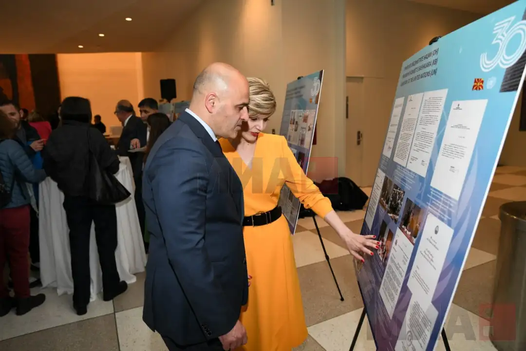 -Додека сме сите тука во оваа епохална зграда на Ист Ривер за да го прославиме нашето 30 годишно членство во ОН, би сакал да ве поканам и да ја погледнете изложбата што заеднички ја организираа Националниот архив на нашата земја и Министерството за надворешни работи каде се прикажани сите оние моменти кога нашата држава била ставена на тест, сите неволји, но и сите успеси, рече премиерот Ковачевски.