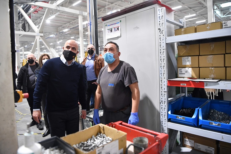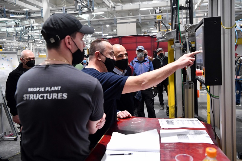 Ковачевски заедно со менаџментот на компанијата, министерската за труд и социјална политика Јована Тренчевска, директорите на ТИРЗ Јован Деспотовски и на Државен инспекторат за труд, Весна Томовска, денешната посета ја искористија и како можност за разговор со дел од работниците кои изразија задоволство од новиот закон.