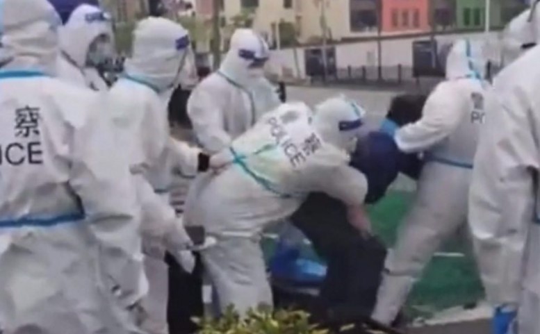 Се појави видео од судири меѓу полицијата и луѓето кои беа принудени да ги напуштат своите домови во Шангај, додека градот влегува во третата недела од заклучувањето поради ковид.