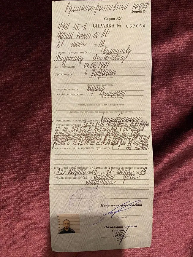 „Некои беа во балаки, додека други беа во униформа“, изјави тој за Медуза. „Десетте од нив застанаа пред мене и викаа: „Потпиши признание! Или можеби сакаш цевка да ти заглави на задникот и да ти се пробива бодликава жица? Или сакаш струја да се праќа преку тебе? Или сакаш да те одведат во шума и да те застрелаат како терорист? И твоите децда бидат испратени во сиропиталиште?“