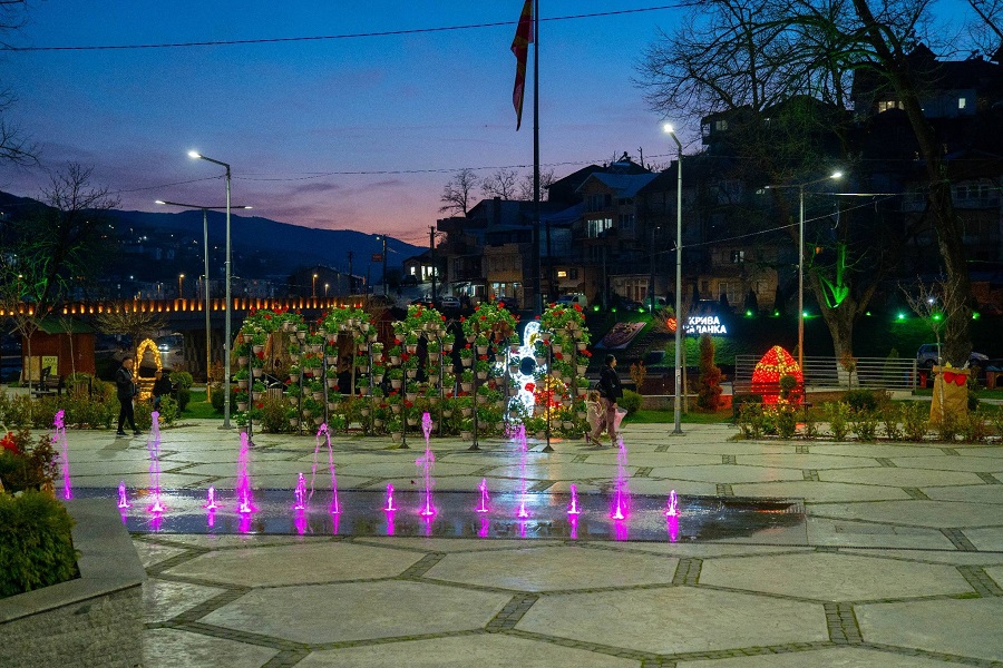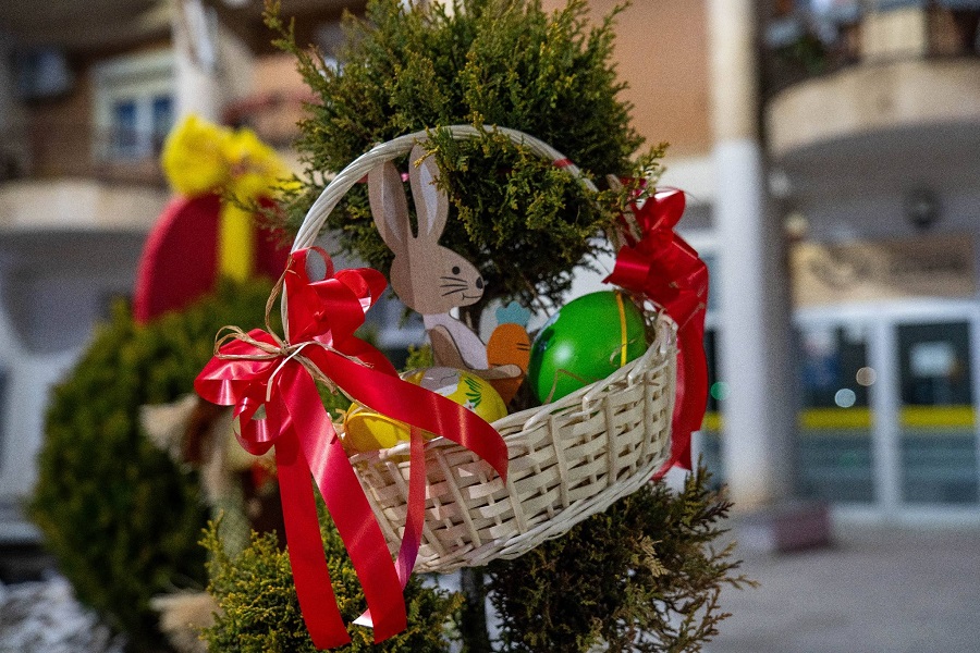 Градскиот плоштад и кејот на Крива Река се разубавени со раскошни цветни леи, внимателно аранжирани декорации и автентични велигденски реквизити.