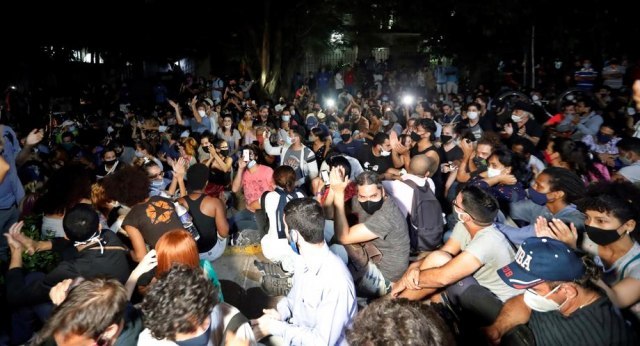 Канал одржа страсвен говот, обвинувајќи ги САД за неодаменшните нереди и економските санкции, „блокада, аграсија и терор“, додека приврзаниците мавтаа со кубански знаменца и знамиња на Движењето 26 јули, кое Фидел Кастро го водеше во текот на кубанската револуција.