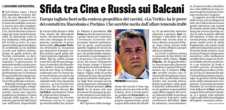 „Кина уште од почетокот на пандемијата се држи до принципот на директно управување со помошта и провизиите со владите. Уште еднаш, потенцијалниот обид за корупција извршен од мрежата на Заев, дури и на сметка на здравјето на граѓаните, овој пат се судри со тврдоглавоста на комунистичкиот кинески режим“, тврди „Ла верита“.