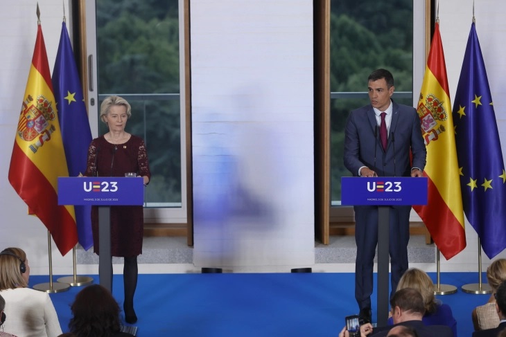 Невозможно е да се замисли Украина, Молдавија и земјите од Западен Балкан да се надвор од ЕУ и да останат под руско и кинеско влијание, изјави претседателката на Европска комисија, Урсула фон дер Лајен на денешната заедничка прес-конференција во Мадрид со шпанскиот премиер Педро Санчез.