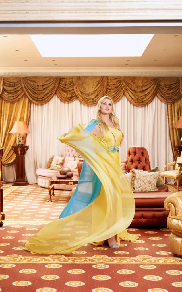 Имаше цртани приказни за шопинг од 60.000 фунти и за капење во ништо друго освен шампањ, сето тоа дизајнирано да создаде медиумска слика на незамисливо, завидно богатство. Во нивниот дом во Киев, кој досега во овој конфликт сè уште не е разурнат, се сеќавам на скапите златни тапети. Мермерот. Масивните мурали на Захур. Тоа беше живот на Бентли и коњи, на негови и нејзини приватни авиони и јахти со телохранители, дадилки и шминкери. А тука беа и обожаваните миленичиња. Мачката со целосно избричено тело. Кучето носи обетки. Необјаснивиот сокол во ходникот.