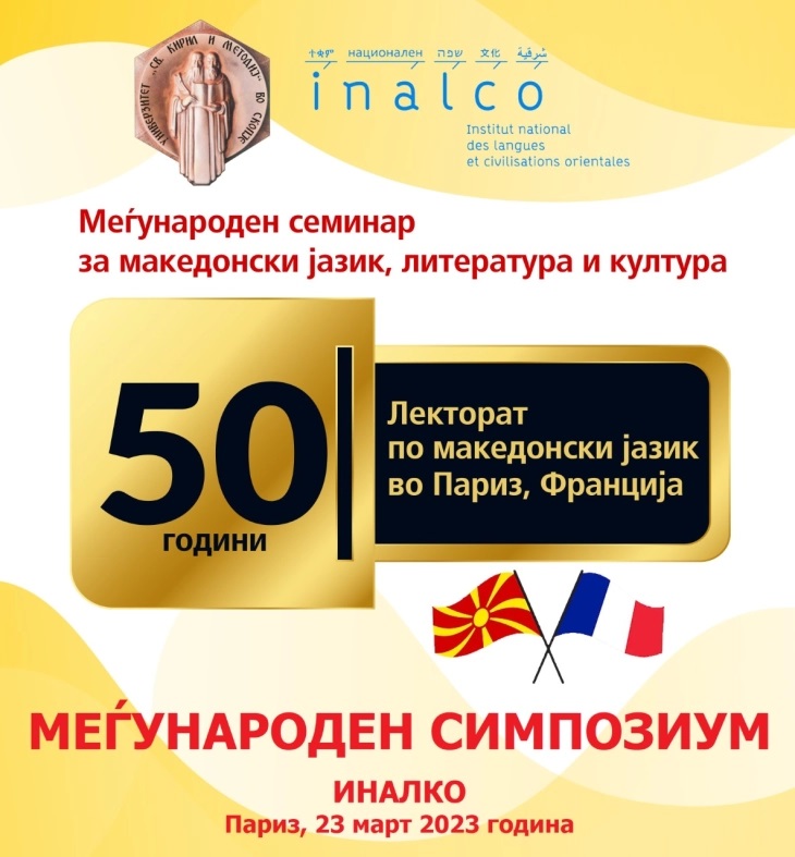 Лекторатот по македонски јазик во Париз, кој е најстар и постои 50 години, денеска ќе го одбележи јубилејот со меѓународен симпозиум на престижниот Национален институт за ориентални јазици и цивилизации (ИНАЛКО) во француската престолнина.