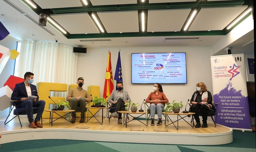 На првата панел дискусија, како што соопштија денеска од Сојузот на средношколци и Институт за добро управување и ЕА перспективи, дебатирале Лука Павиќевиќ, претседател на Сојузот на средношколци, Ана Попризова, училишен психолог во СУГС „Орце Николов“, Елена Данова, младинска работничка во Еквалис, Иван Јованов, извршен директор на LEAD и Јовица Јанковиќ, претставник на ИДУЕП.