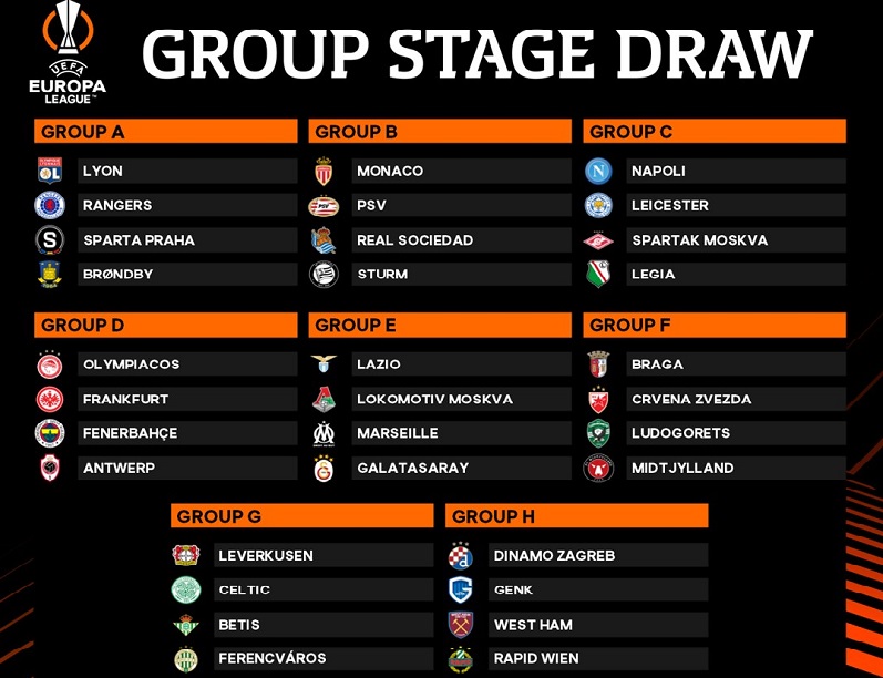 Во Истанбул попладнево се одржа ждрепката за групната фаза од фудбалската Лига на Европа за сезоната 2021/22.