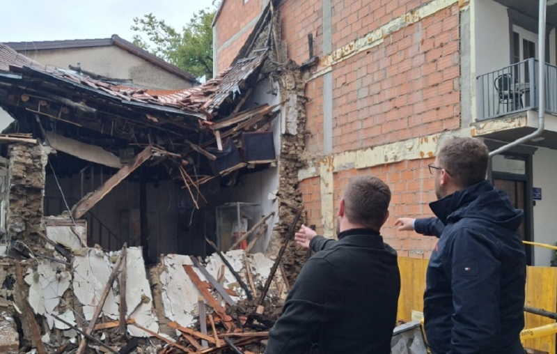 По посетата на локацијата, каде пред два дена при изведба на градежни работи на индивидуален објект во старото градско јадро беше срушен јужниот ѕид и дел од кровната конструкција од куќа заштитена како културно наследство информира дека инспекциската служба на Управата за заштита на културно наследство констатирала сериозни оштетувања.