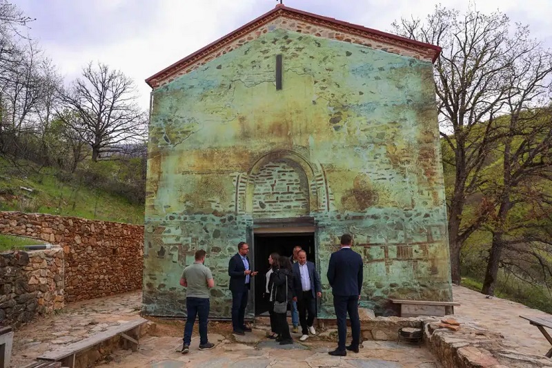 Во рамки на посетата, министерот ја посети и Црква „Св. Ѓорѓи“ во село Курбиново, еден од најзначајните споменици на средновековната уметност, изграден во 1191 година.