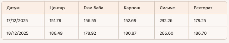 Согласно настанатата состојба за мерните места во Скопје – Центар, Гази Баба, Карпош, Лисиче и Ректорат важат следните мерки: