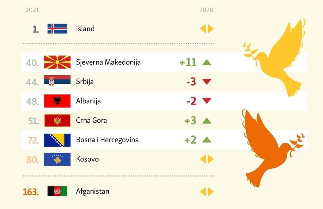 Според Институтот, поголем дел од земјите од Западен Балкан бележат напредок во состојбата за мир, безбедност и внатрешна стабилност.