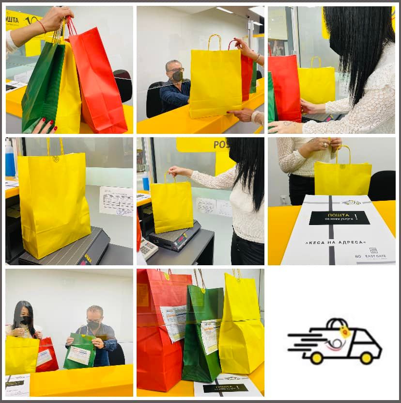 „Донеси ги купените производи во Поштата во East Gate Mall и искористи ја новата услуга „Кеса на адреса“! Нудиме брза премиум услуга – достава за само неколку часа од преземање! Овозможуваме најниска цена од 100 денари, за пратки до 5 кг. во Скопје! Услугата „Кеса на адреса“ е достапна и во сабота и недела!“, велат од „Маедонска пошта“.