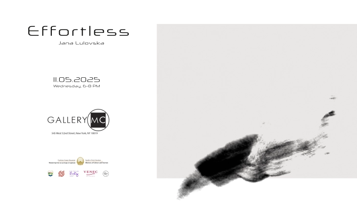 Во Gallery MC во Њујорк денеска ќе биде отворена самостојната изложба „Effortless“ („Природно“) на македонската интердисциплинарна уметница Јана Луловска. Изложбата ќе биде достапна за посетители до 13 ноември.