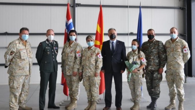 Тимот на скопскиот аеродром бил пречекан од државниот секретар во Министерството, Драган Николиќ, бригадниот генерал Орце Јордев, одбранбеното аташе на Кралството Норвешка акредитирано за нашата земја, потполковник Егил Далтвеит, како и членови на нивните семејства.