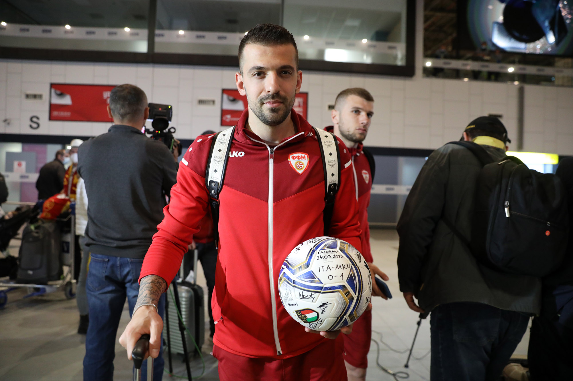 Македонската фудбалска репрезентација попладнево пристигна на скопскиот аеродром со чартер-лет од Палермо, каде вчеравечер на стадионот „Ренцо Барбера“ оствари сензационална победа над европскиот првак Италија и дојде на само чекор до историски пласман на Светско првенство.