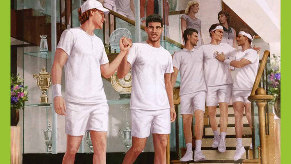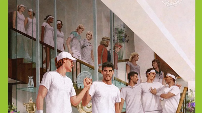 Новите машки играчи Јаник Синер и Карлос Алкараз, од кои ниту еден досега немал влијание на Вимблдон, стојат во преден план на сликата.