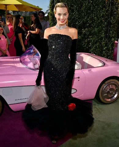 Актерката, која ја игра Барби во претстојниот филм, го дополни својот изглед со црни оперски ракавици додека се држеше за светло розова свилена марама од мусел. Таа додала пар црни сандали од Маноло Бланик и дијамантски ѓердани, обетки и прстен од Лорејн Шварц за да го заврши изгледот.