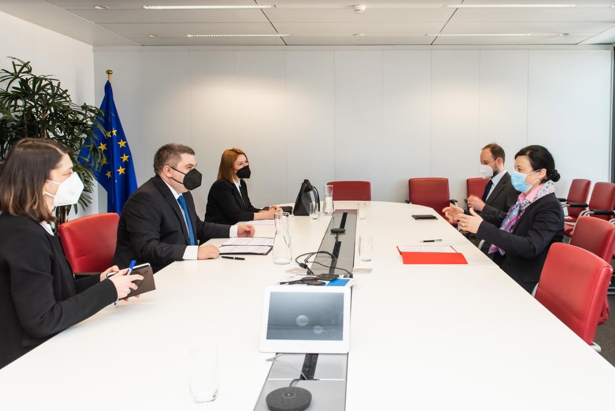 Министерот за правда Бојан Маричиќ денес во Брисел се сретна со потпретседателката на Европската комисија за транспарентност и вредности Вера Јоурова. На средбата, како што соопштуваат од Министерството, се разговарало за реформите во Македонија со фокус на оние во правосудството, владеењето на правото, но и за европските интеграции на земјата.
