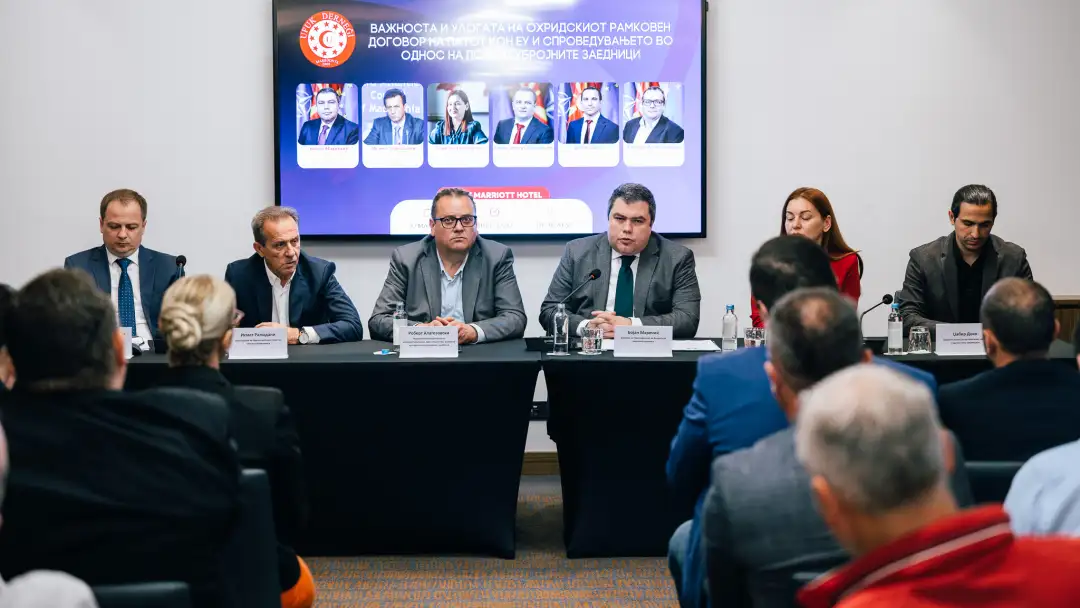 На панел дискусијата организирана од Здружението за млади, демократија и човекови права УФУК-Скопје учествувале и Исмет Рамадани, претседател на Евроатлантскиот совет на Северна Македонија и Александар Бајдевски, заменик-министер за информатичко општество и администрација