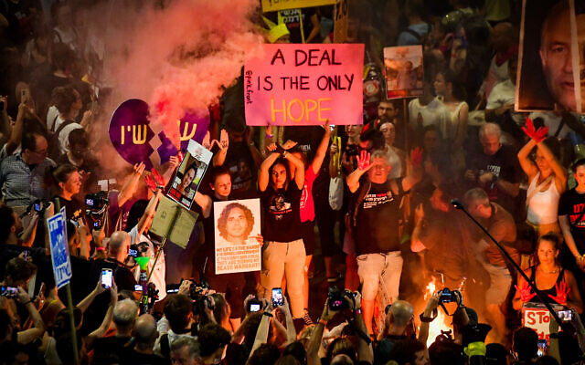 На еден од протестните собири, мајка на заложник држен од милитантната палестинска организација Хамас го повика раководството на израелскиот безбедносен апарат да го спречи премиерот Бенјамин Нетанјаху да го „торпедира“ договорот, објави израелскиот весник Хаарец.