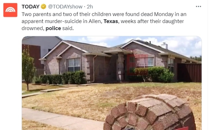 Далас – Локалната полиција пронашла четири тела во дом во Ален, Северен Тексас, а според извештајот на истражителот, се работи за очигледен случај на убиство и самоубиство.
