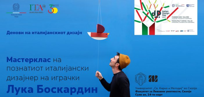 На 14 март се отвора тридневната манифестација „Денови на италијанскиот дизајн“ во чии рамки од 10 часот во историскиот објект Сули ан во Старата скопска чаршија ќе се одржи мастерклас на познатиот италијански дизајнер на играчки Лука Боскардин.