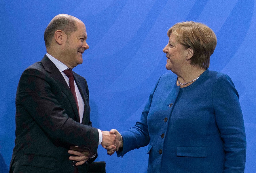 Германската канцеларка Ангела Меркел денеска му честиташе на кандидатот за канцелар на СПД, Олаф Шолц, за победата на последните парламентарни избори во Германија.