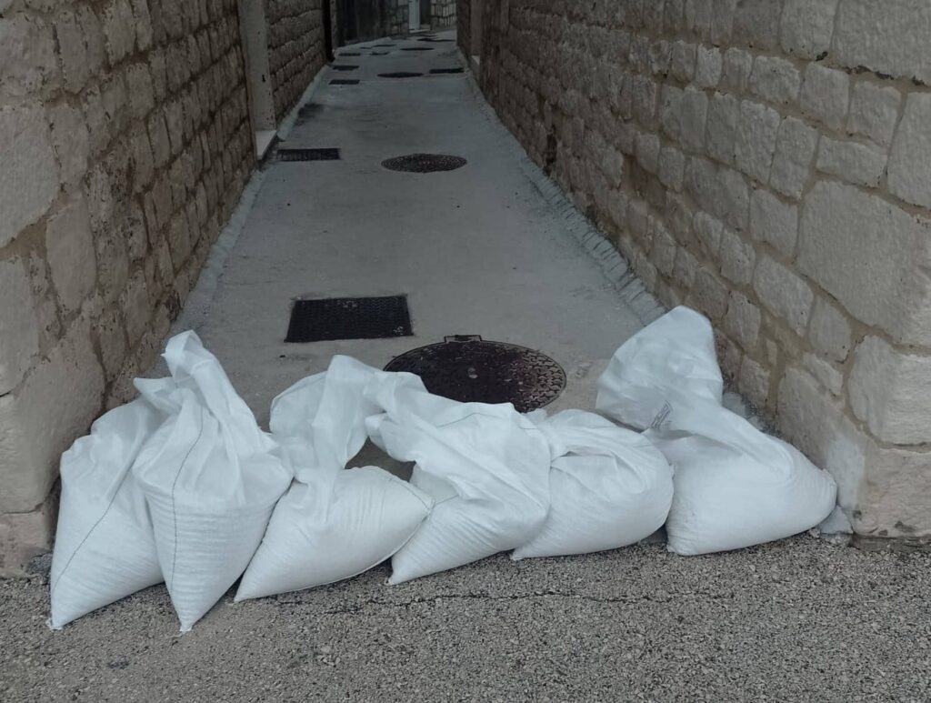 Долно-каштеланскиот брег повторно беше на удар, каде што морето се излеа на брегот и патот, како и во пристаништето во Каштел Нови и на плажата Габине и блиското пристаниште. Според локалното население, најсилните налети од југ се регистрирани вчера попладне околу 17:00 часот, по што жителите почнале да градат импровизирани брани направени од штици и вреќи со песок.
