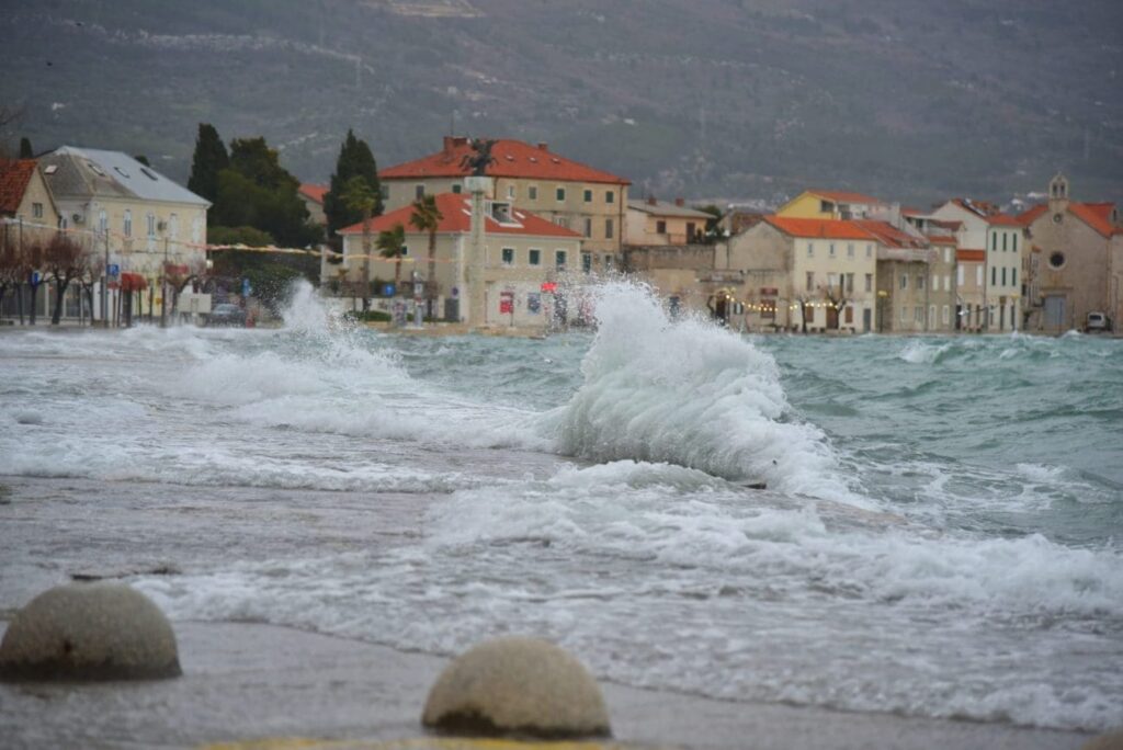 Далмација повторно беше погодена од бран нестабилно време. Циклонот што дејствува над голем дел од Јадранското Море донесе засилување на југот, дожд и грмотевици, а поради циклонската плима морето брзо се крева во Каштела, Сплит и Трогир. Врвот на влошување на времето е забележано во текот на ноќта, пишува Далмација Данас.