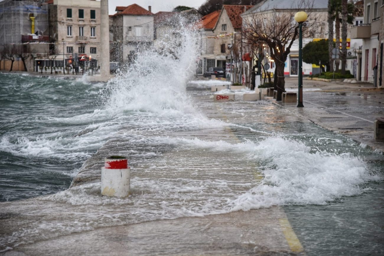 Далмација повторно беше погодена од бран нестабилно време. Циклонот што дејствува над голем дел од Јадранското Море донесе засилување на југот, дожд и грмотевици, а поради циклонската плима морето брзо се крева во Каштела, Сплит и Трогир. Врвот на влошување на времето е забележано во текот на ноќта, пишува Далмација Данас.