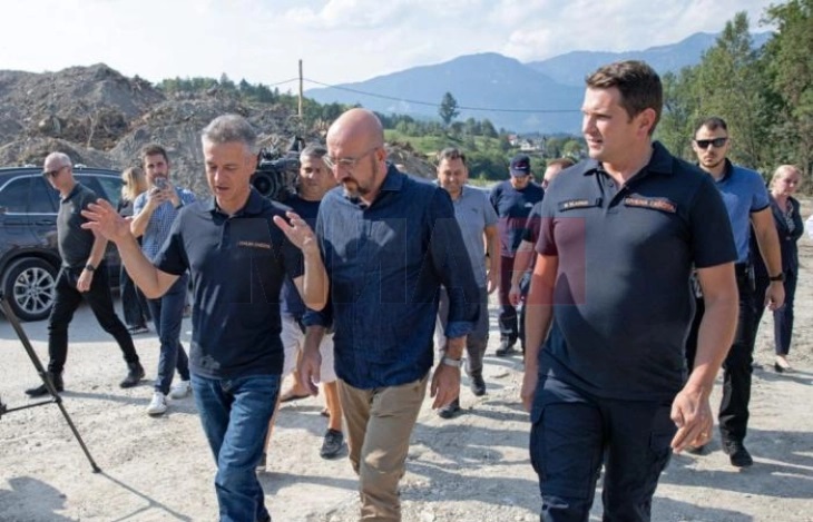 – Ние сме денеска со вас премиере и ние сме со целиот словенечки народ. И утре ќе бидеме со вас. Нема да заборавиме што се случи овде, истакна Мишел во изјавата по посетата на поплавените области.
