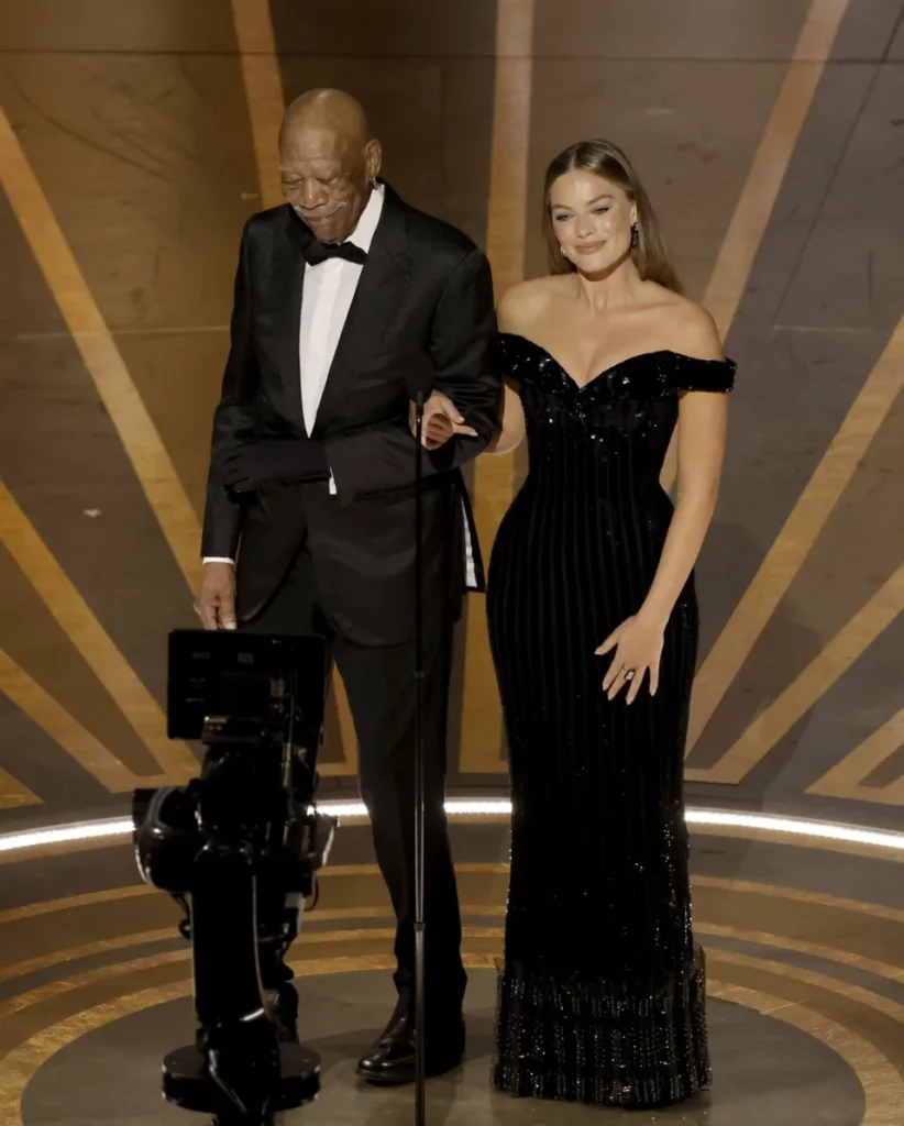 Додека идеше накај сцената со Марго Роби за да прослави 100 години од Warner Bros., Фримен ја покажа својата ќелава глава.