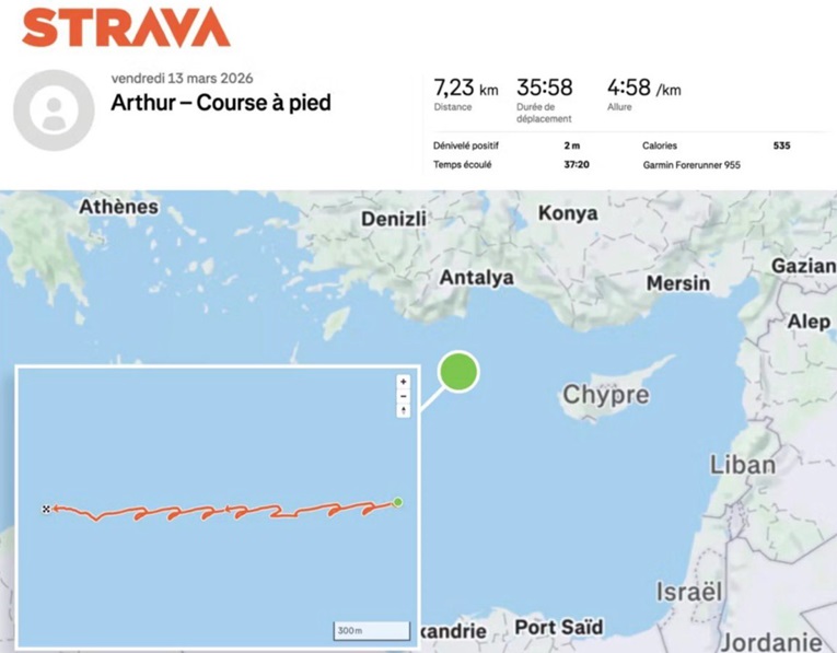 Локацијата на францускиот носач на авиони Шарл де Гол беше откриена во речиси реално време откако еден морнар го снимил своето трчање на палубата користејќи ја популарната апликација за следење на фитнесот Strava. Безбедносниот прекршок се случил додека носачот бил распореден во источниот Медитеран во средината на војната со Иран, објави францускиот весник Le Monde.
