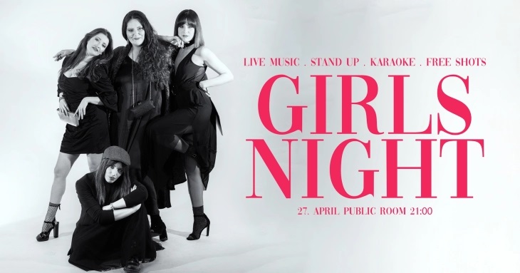 Музичкиот спектакл „Girls Night“, кој е фузија на мјузикал, стенд ап комедија и караоке во изведба на четири млади актерки: Нина Елсезер, Ангела Стојановска, Надица Петрова и Бонита Стеви ќе се одржи утревечер во „Јавна соба“.