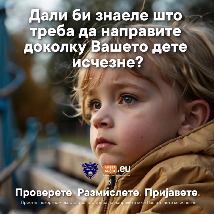 За Меѓународниот ден на исчезнати деца, Амбер Алерт Европа, Европскиот центар за исчезнати деца почна со кампањата „Проверете. Размислете. Пријавете“, велат од МВР и додаваат дека оваа иницијатива насочена кон родителите и негувателите, овозможува сеопфатни совети „чекор-по-чекор“ што да прават во случај на исчезнато дете.
