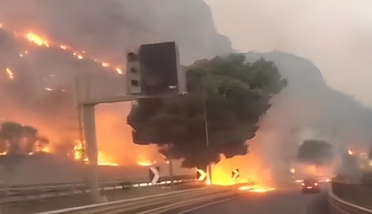 Телефонот на нашата туристичка водителка Паола почнува итно да ѕвони, таа тргнала да помогне. Остануваме уште малку, но штом се запали палма – ефект на кибрит – се пакуваме и заминуваме. Светлината е морничаво жолта. Во еден момент, мојот сопруг му помага на спасителот да го изгаси пожарот што автоматско се појави на паркингот.