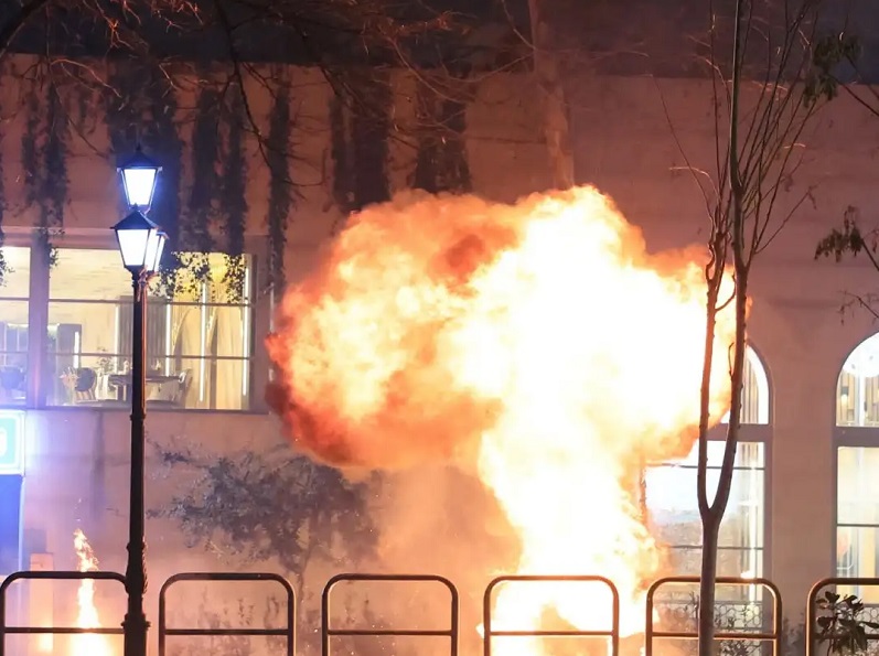 Тие продолжија пред Парламентот, каде што демонстрантите беа уште понасилни кон полицијата, а попатно запалија и многу контејнери за отпад.