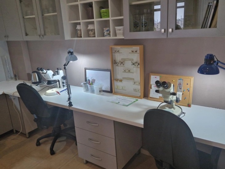 Лабораторијата е опремена со соодветна опрема како што се микроскоп, флакони, епрувети, епендорфи, пинцети, мензури, стаклени чашки, петриевки и слично.