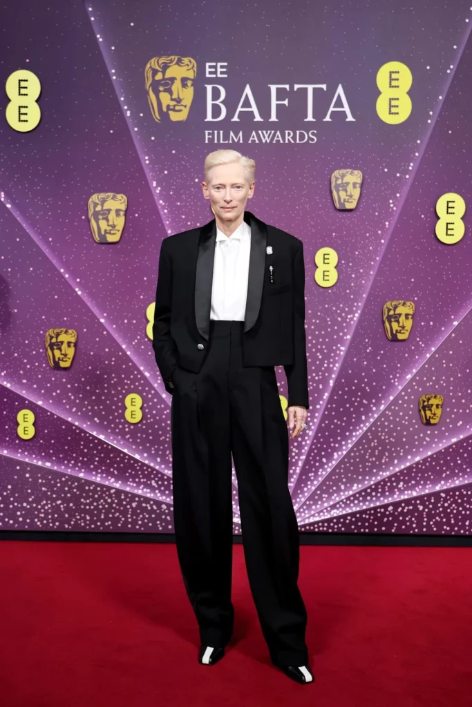 Тилда Свинтон , како и секогаш, избра необичен изглед. Се одлучи за машки стил, наместо женски, женствен. Ѕвездата избра смокинг од Шанел со ултра високи панталони и јакна скратена до колковите и додатоци со брош. Сè на сè, тоа беше возбудлива ноќ за мода и гламур.